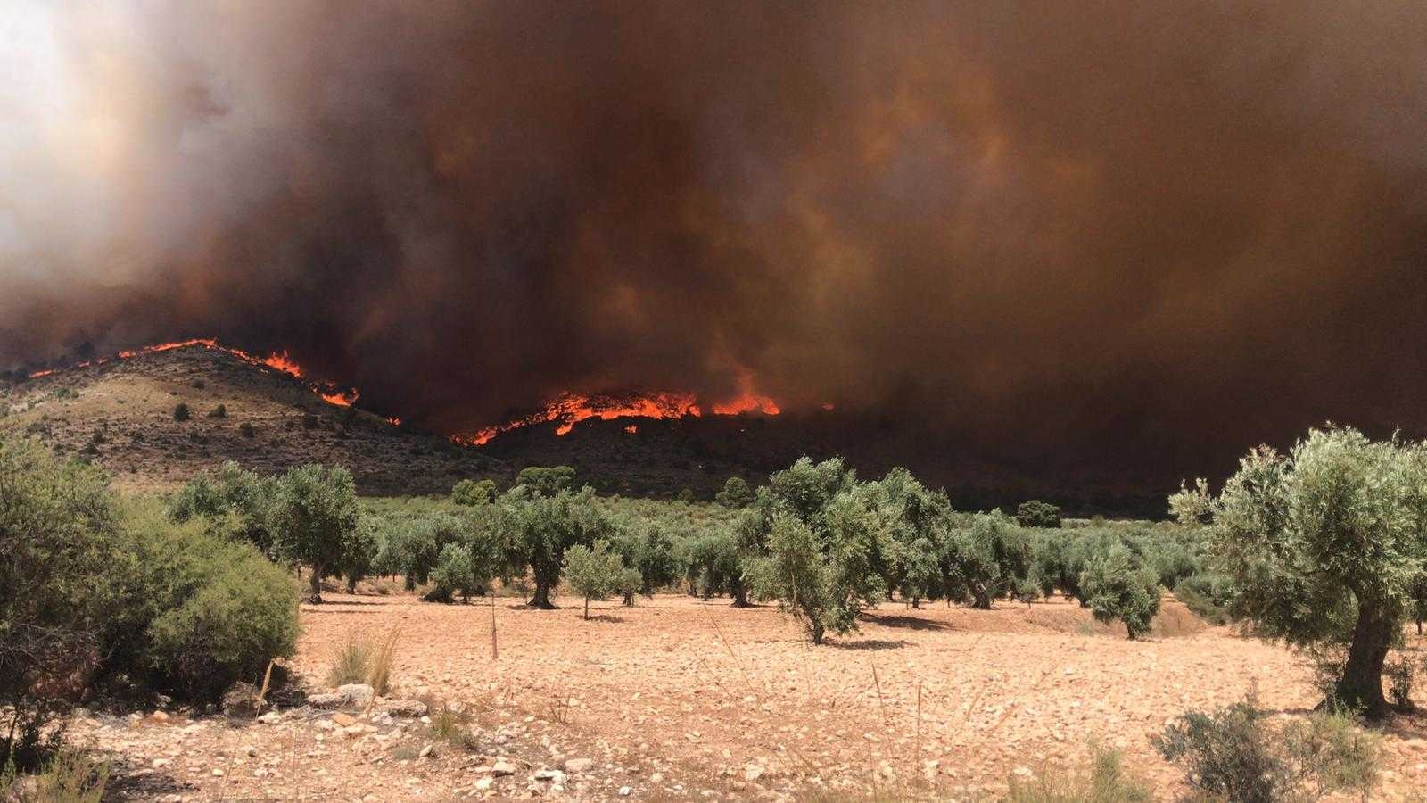 ALICANTE. El incendio forestal declarado este lunes en un barranco de difícil acceso en la localidad alicantina de Beneixama ha sido dado por estabilizado, después de haber arrasado unas 900 hectáreas, según el último balance, aunque aún no está perimetrado. Un 10% de esa superficie serían cultivos, según La Unió de Llauradors, sobre todo almendros y olivos. La asociación de agricultores destaca que estos cultivos habrían actuado como cortafuegos, en una jornada en la que las condiciones meteorológicas se prevén más favorables para las tareas de extinción, al bajar las temperaturas y subir la humedad relativa.