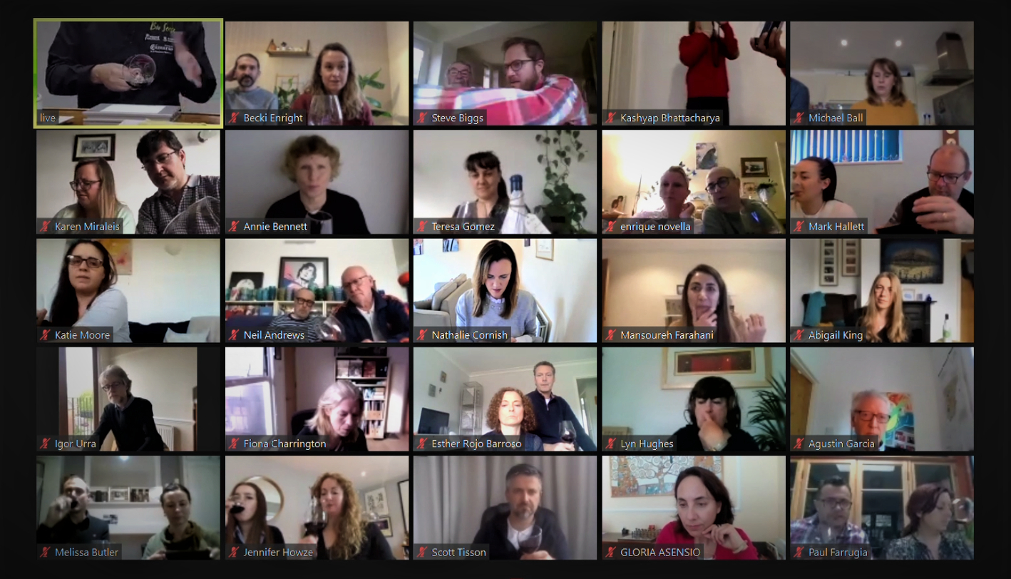 •  Momento de la cata virtual Bio Sense con referente turísticos de Reino Unido