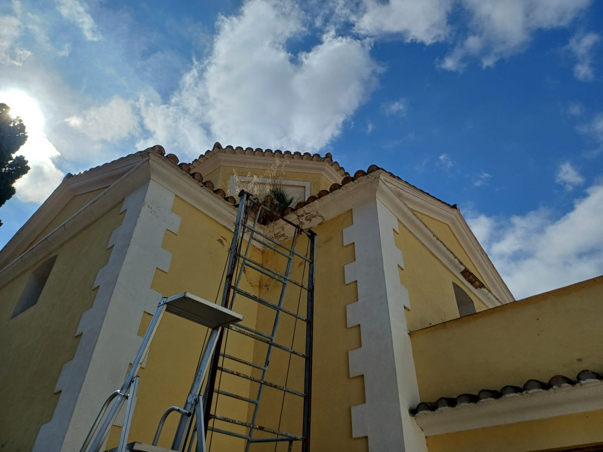 En el interior del cementerio, los trabajos se han centrado en la iglesia, donde se ha procedido a la reparación de goteras y humedades en el ábside, junto con la pintura exterior del templo, actuaciones necesarias para frenar el deterioro provocado por la humedad y garantizar su correcta conservación. De forma complementaria, se ha llevado a cabo la retirada de vegetación en el tejado de la cubierta superior de la iglesia, una intervención preventiva para evitar filtraciones y daños estructurales a medio y largo plazo. Estas reformas continúan con la voluntad del equipo de gobierno de dignificar las instalaciones y se suman a la apertura de la iglesia todos los domingos para que los vecinos puedan acercarse a visitar a sus difuntos y hacer recogimiento y oración.