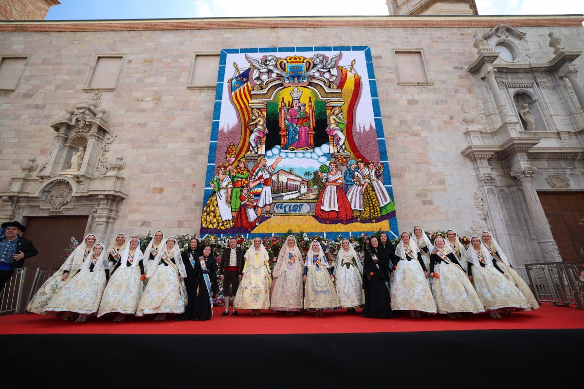 La festividad ha dado comienzo en el patio del Colegio Salesianos con un tributo a San José, dando paso a un desfile que ha recorrido las principales vías de la localidad. El punto culminante ha tenido lugar ante el tapiz fallero, una pieza de artesanía confeccionada mediante la técnica del "paperet" por el artista local Juan Dualde inspirado en el Clot de la Mare de Déu con la colaboración con la Federació de Falles de Burriana. Sobre esta estructura, falleros y falleras de todas las edades han depositado sus ramos para vestir el manto de la patrona.