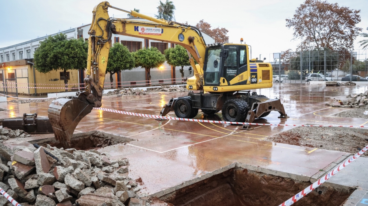 Los operarios ya realizan las labores previas a la colocación de un techo elevado con pilares para que los usuarios puedan jugar a deportes como el balonmano, el baloncesto o el fútbol sala incluso en días de lluvia. Además, se adecuará la solera existente, se construirá una pista multiusos y se urbanizará el acceso.