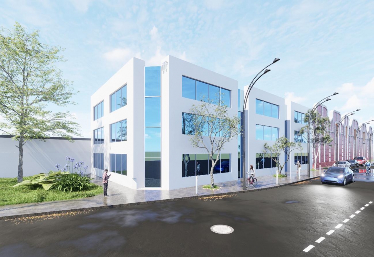 CASTELLÓ. Un edificio de arquitectura vanguardista será la primera imagen que observen los pasajeros que bajen del tren en la estación de Benicarló. Esa es, al menos, la intención que tiene la multinacional IFF Benicarló. Para ello, derribará el extremo más próximo a la estación de las actuales naves —deterioradas, pintadas de granate y cubiertas de grafitis— y levantará en su lugar un inmueble icónico que albergará el laboratorio de investigación y las oficinas de la compañía. Detrás de ese edificio se ubicará la nueva planta de producción de hidrógeno verde.