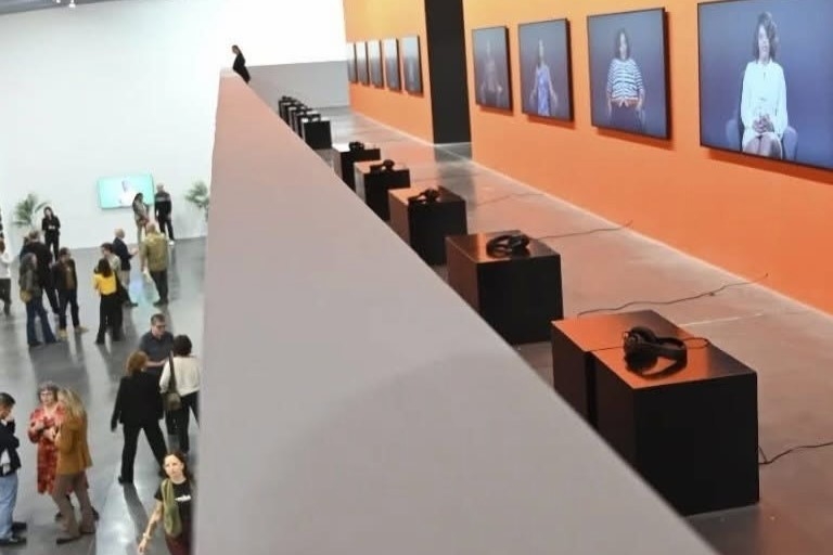 Las reflexiones no se detienen ahí. Entre las cuatro paredes del EACC se puede ver una video instalación que narra la batalla ideológica que enfrentó a diferentes sectores feministas y a Amnistía Internacional, las fotografías intervenidas que denuncian el régimen del apartheid y la serie de 1.001 cintas de vídeo selladas en fundas de plástico e inspiradas en la leyenda de Scheherazade con la que nos quiere hacer reflexionar sobre el orden patriarcal.