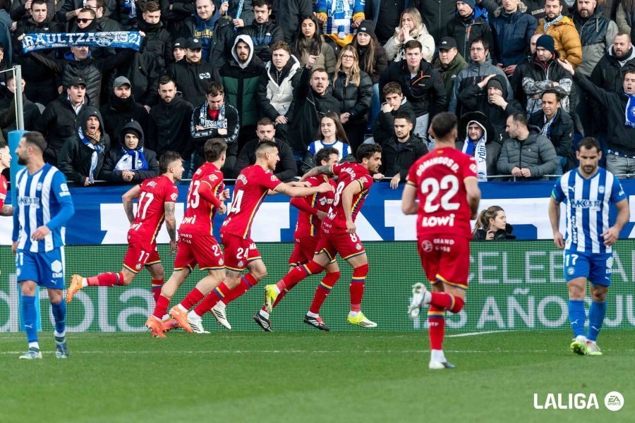 • Los jugadores del Getafe celebrando su segundo gol ante el Alavés. Foto: LALIGA