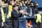 - Comesaña y Pau celebrando con Mouriño su gol. -