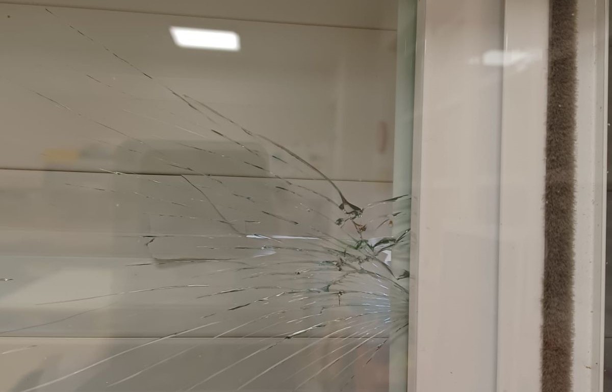 CON EL LANZAMIENTO DE BOTELLAS Y LA ROTURA DE CRISTALES Y PERSIANAS