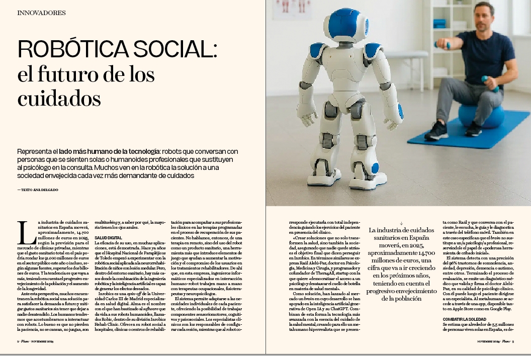 «Crear soluciones que no solo transformen la salud, sino también la sociedad, asegurando que nadie quede atrás» es el objetivo final que dicen perseguir en Inrobics. En términos similares se expresa Raúl Alelú-Paz, doctor en Psicología, Medicina y Cirugía, y programador y cofundador de Thera4All, startup con la que quiere «democratizar el acceso a un psicólogo y desatascar el cuello de botella en materia de salud mental».