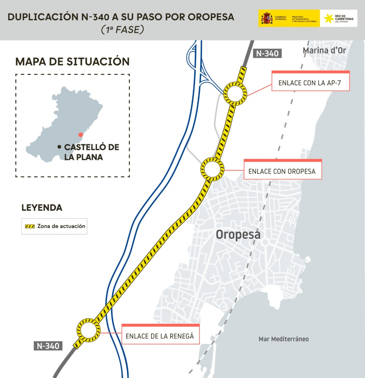 De este modo, se acondicionará la actual carretera N-340 entre los kilómetros 992 y 998 para que pueda constituirse como la primera calzada de una futura duplicación de la vía, con el objetivo de mejorar las condiciones de circulación y la seguridad vial.