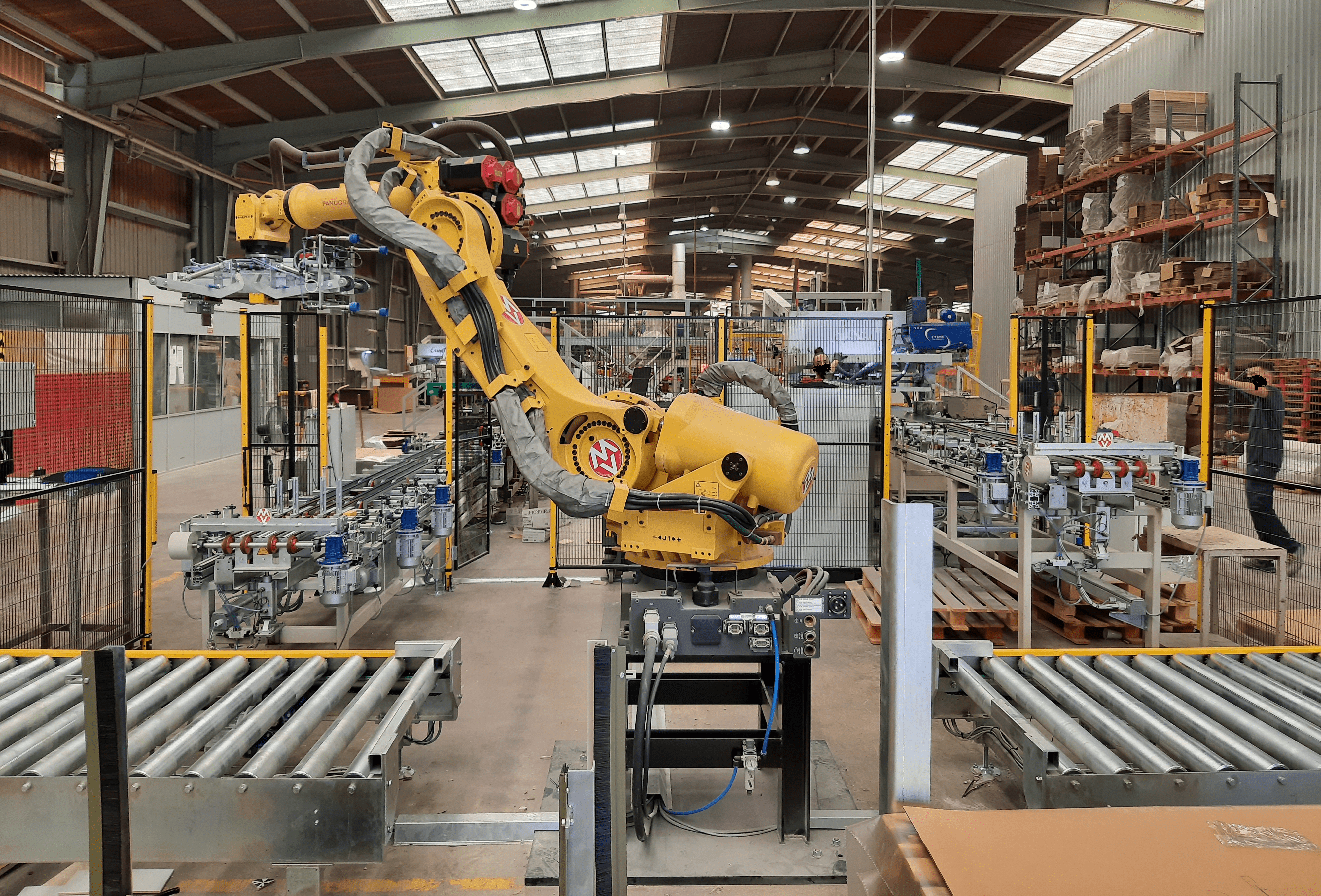 Robots paletizadores que permiten paletizar todo tipo de formatos de forma autónoma, segura, eficaz y rápida. Dado que no solo se crece en formatos grandes, sino que también aumenta la producción en pequeños formatos. Eliminando así tareas duras e inseguras para asumir la alta productividad actual.