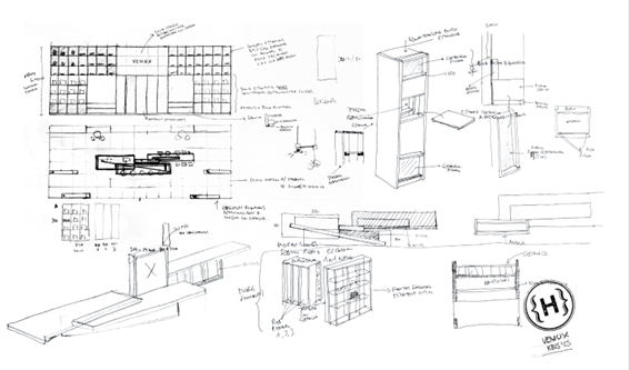 El stand partirá de una idea rectora: el orden como valor estético y herramienta de proyecto. Una gran estructura de cuadrículas, estantes y módulos envolverá el espacio y organizará el recorrido, generando un paisaje de nichos donde cada superficie encontrará su lugar en forma de cubos.